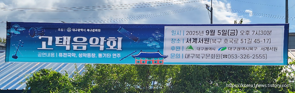 대구 북구 호국로 서계서원 '고택음악회' 현수막.