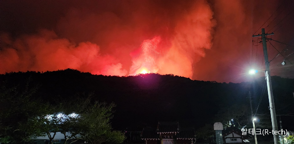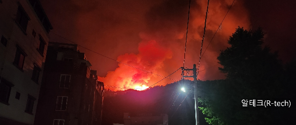 위 사진은 29일 새벽 4시 40분쯤 제 사무실 바로 앞 산에서 불이 난 상황입니다. 대피도 했다가 사무실 걱정돼 근처까지 와봤다가 꼬박 밤을 새웠습니다.