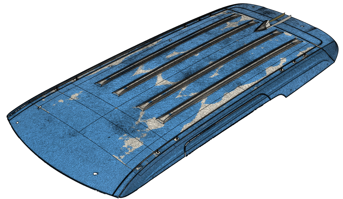 자동차 루프 3D스캔, 역설계, CAS(Class A Surface Modelling), 3D제품모델링 및 설계.